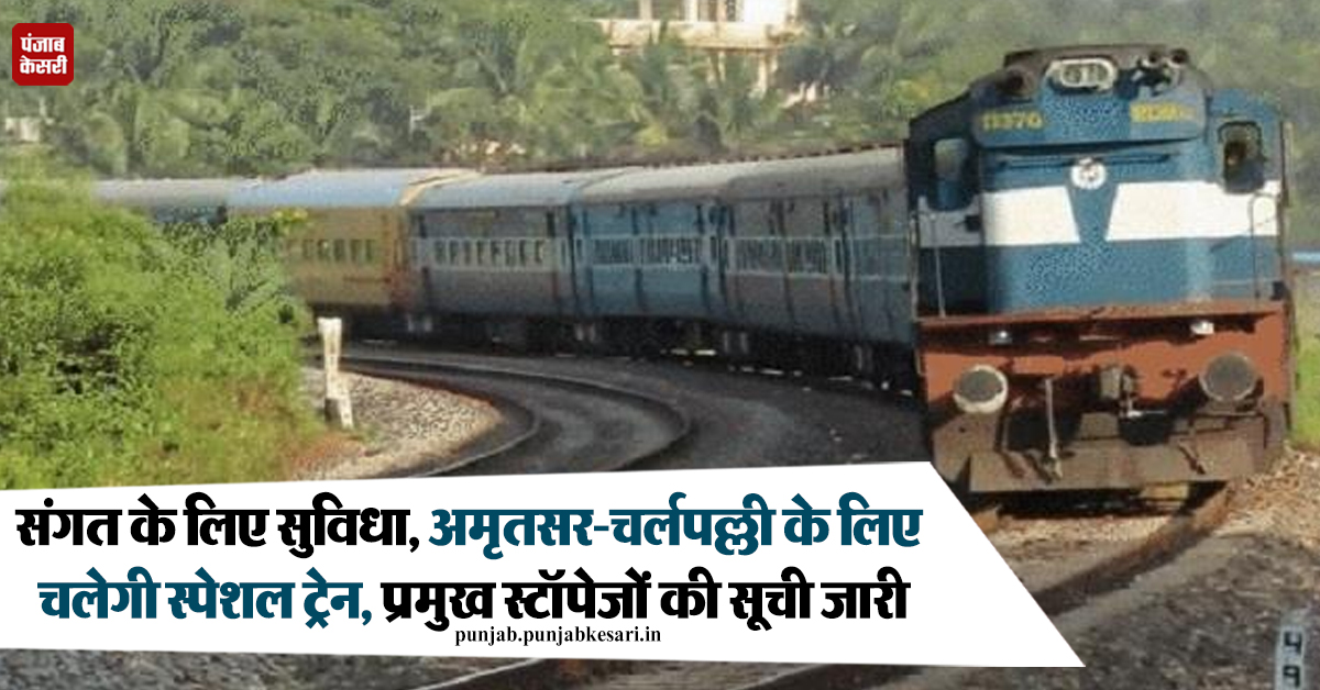 संगत के लिए सुविधा, अमृतसर-चर्लपल्ली के लिए चलेगी स्पेशल ट्रेन, प्रमुख स्टॉपेजों की सूची जारी