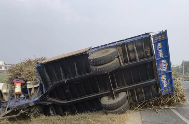 जानकारी के अनुसार ट्रैक्टर चालक गन्ने से भरी ट्रॉली को पनियार गन्ना मिल ले जा रहा था। इसी दौरान रास्ते में साइकिल सवार को बचाने के चक्कर में गन्ने से लदी ट्रैक्टर-ट्रॉली पलट गई। हादसे के बाद सड़क पर ट्रॉली में लदा सारा गन्ना बिखर गया।