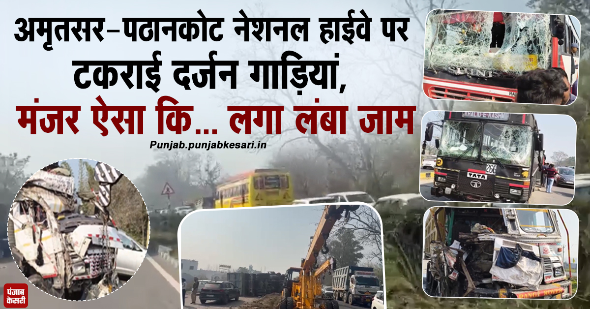 अमृतसर-पठानकोट नेशनल हाईवे पर टकराई दर्जन गाड़ियां, मंजर ऐसा कि... लगा लंबा जाम