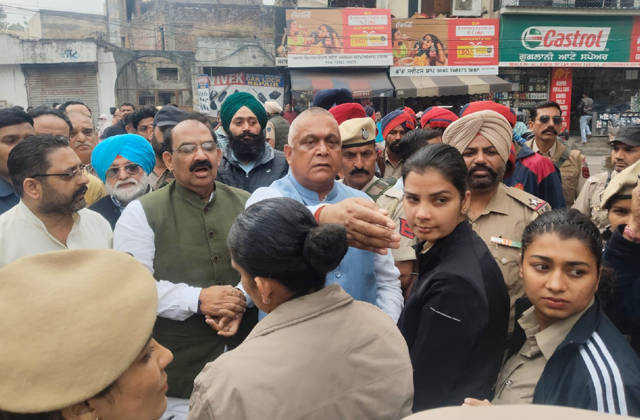 इस दौरान कोर्ट के बाहर पंजाब बीजेपी कार्यकारी प्रधान अश्वनी शर्मा और के.डी. भंडारी पहुंचे। इस दौरान धरने का दौरान पंजाब पुलिस प्रशासन और पंजाब सरकार के खिलाफ प्रदर्शन करते हुए नारेबाजी की गई। इस धरने के मौके पर अश्वनी शर्मी ने पंजाब सरकार को घेरते हुए कहा कि, वह आज यहां कोर्ट में अपने नेताओं से मिलने आए हैं लेकिन सरकार द्वारा यहां पर महिला पुलिस को लगाया हुआ है। अश्वनी शर्मा ने कहा कि वह महिला पुलिस से क्या बात करें, यहां पर किसी बड़े पुलिस अधिकारी को आगे आकर बात करनी चाहिए।
