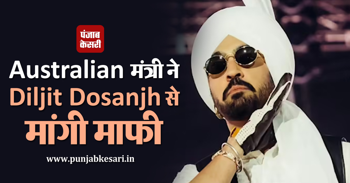 पंजाब डेस्क : मशहूर पंजाबी गायक दिलजीत दोसांझ को लेकर एक बड़ी खबर आई है। मिली जानकारी के अनुसार पंजाबी गायक और एक्टर दिलजीत दोसांझ से ऑस्ट्रेलियन मंत्री ने माफी मांगी है। इसके साथ ही उन्होंने दिलजीत दोसांझ की तारीफ भी की है।