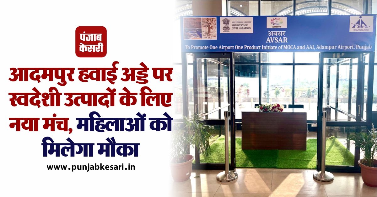 जालंधर ( सलवान) : आदमपुर हवाई अड्डे पर “अवसर” आऊटलेट्स की शुरूआत की गई है। इस पहल का उद्देश्य देशभर की महिलाओं, कारीगरों और शिल्पकारों की स्वदेशी खाद्य वस्तुओं और हस्तशिल्प को बढ़ावा देना है।