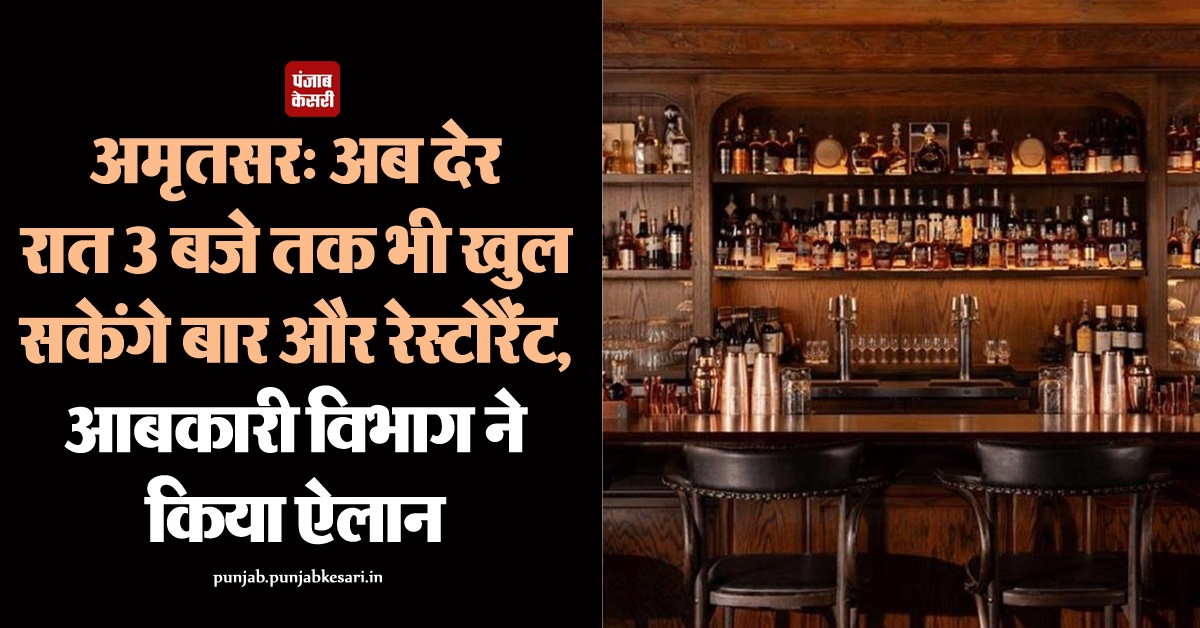 अमृतसर: अब देर रात 3 बजे तक भी खुल सकेंगे बार और रेस्टोरैंट, आबकारी विभाग ने किया ऐलान