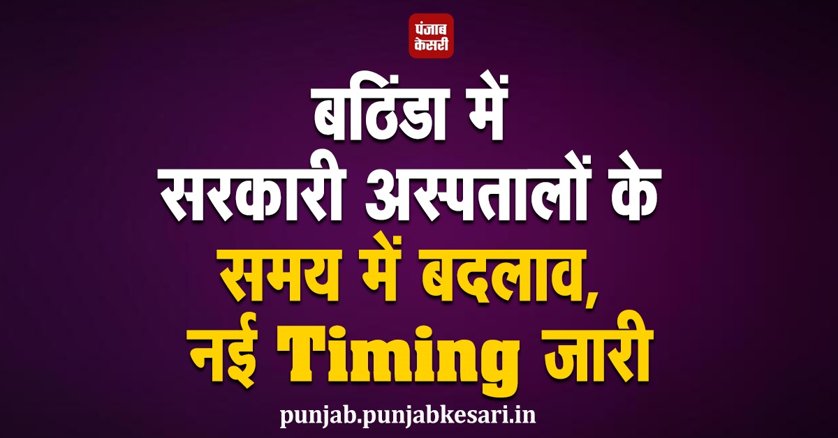 बठिंडा में सरकारी अस्पतालों के समय में बदलाव, नई Timing जारी