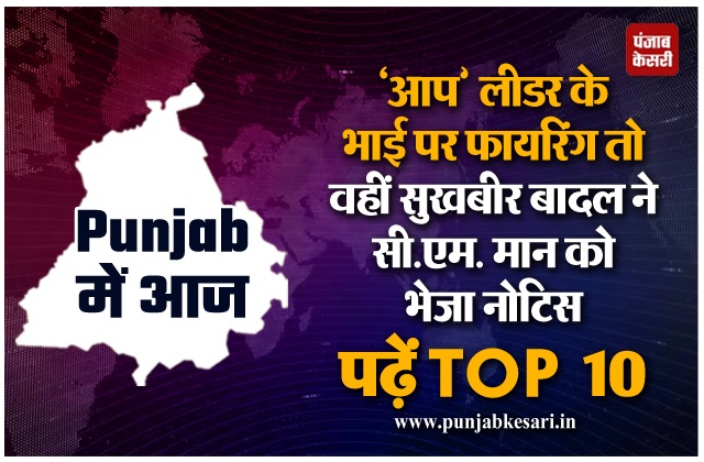 Punjab में आज: ''आप'' लीडर के भाई पर फायरिंग तो वहीं सुखबीर बादल ने सी.एम. मान को भोजा नोटिस, पढ़ें Top 10