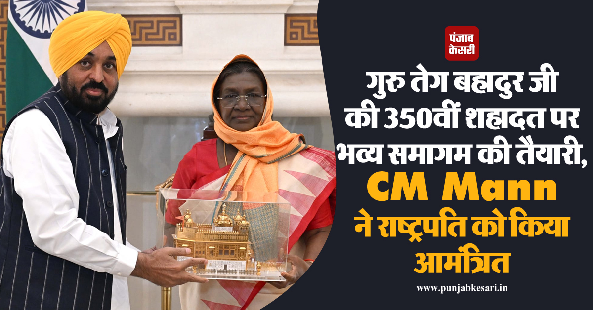 गुरु तेग बहादुर जी की 350वीं शहादत पर भव्य समागम की तैयारी, CM Mann ने राष्ट्रपति को किया आमंत्रित