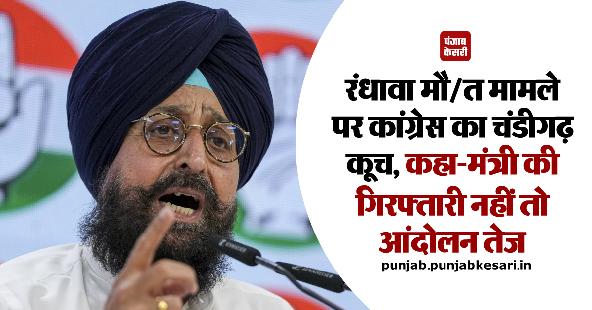 रंधावा मौ'त मामले पर कांग्रेस का चंडीगढ़ कूच, कहा-मंत्री की गिरफ्तारी नहीं तो आंदोलन तेज