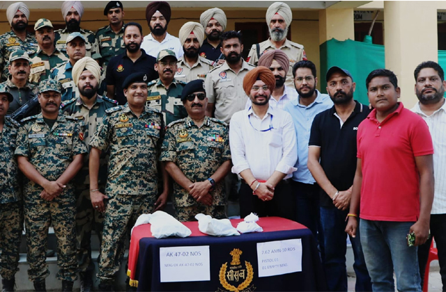 प्राप्त जानकारी के अनुसार, तरनतारन जिले के अंतर्गत भारत-पाकिस्तान सीमा के पास मेहंदीपुर गांव में BSF और SSOC को गुप्त सूचना मिली थी कि पड़ोसी देश पाकिस्तान से ड्रोन की मदद से हथियारों की एक खेप आई है, जिसके संबंध में सोमवार सुबह दोनों द्वारा चलाए गए संयुक्त तलाशी अभियान के दौरान पूरे इलाके की गहन जांच की गई। इस दौरान संयुक्त टीम को बड़ी सफलता तब मिली जब खेतों से 2 एके-47 राइफलें, 2 मैगज़ीन, 1 पिस्तौल और 10 कारतूस बरामद किए गए। ये बरामद हथियार संभवतः पाकिस्तान से ड्रोन की मदद से भारतीय क्षेत्र में पहुंचे हैं, जिसकी गहन जांच की जा रही है। गौरतलब है कि जहां एक ओर ड्रोन की मदद से इतनी सारी खेपें भारतीय क्षेत्र में पहुंच रही हैं, वहीं भारत का माहौल बिगाड़ने के इरादे से भी विभिन्न प्रकार के हथियारों की खेप ड्रोन की मदद से भेजी जा रही है। फिलहाल, SSOC अमृतसर की टीम ने इन बरामद हथियारों को अपने कब्जे में लेकर आगे की जांच शुरू कर दी है।