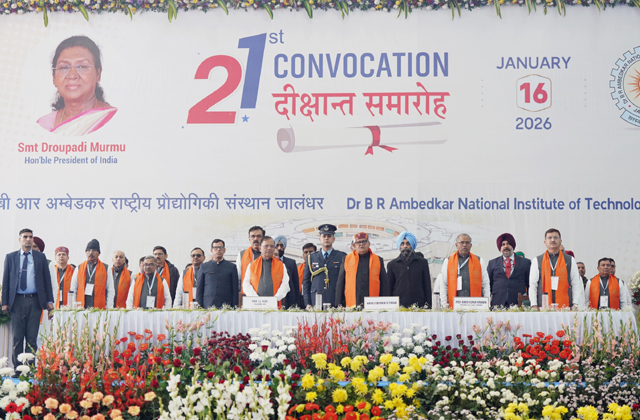 जालंधर : जालंधर डॉ. बी.आर. अंबेडकर नेशनल इंस्टीट्यूट ऑफ टेक्नोलॉजी (NIT) में आज 21वां कान्वोकेशन समारोह आयोजित किया गया। इस दौरान पंजाब के राज्यपाल गुलाब चंद कटारिया ने युवाओं से आग्राह किया कि वे अपनी शिक्षा और प्रतिभा का उपयोग देश और समाज के हित में करें। उन्होंने कहा कि भारत का भविष्य विद्यार्थियों के हाथों में है और उनकी सफलता से ही राष्ट्र की प्रगति सुनिश्चित होगी।