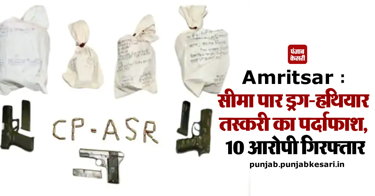 अमृतसर : अमृतसर कमिश्नरेट पुलिस ने एक बड़ा क्रैकडाउन करते हुए सीमा पार से ड्रग्स और अवैध हथियार लाने वाले दो संगठित गिरोह को पकड़ लिया। कार्रवाई में 10 आरोपी गिरफ्तार किए गए और भारी मात्रा में हेरोइन, पिस्टल और कारतूस बरामद हुए।