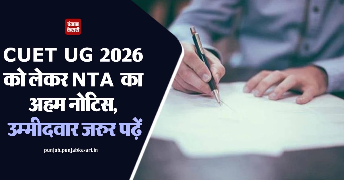 पंजाब डेस्क : नेशनल टेस्टिंग एजेंसी (NTA) ने कॉमन यूनिवर्सिटी एंट्रेंस टेस्ट (CUET UG) 2026 को लेकर अभ्यर्थियों के लिए एक अहम सार्वजनिक सूचना जारी की है। एजेंसी ने उम्मीदवारों को समय रहते आवेदन प्रक्रिया पूरी करने की सलाह दी है, ताकि आखिरी समय की परेशानी से बचा जा सके।