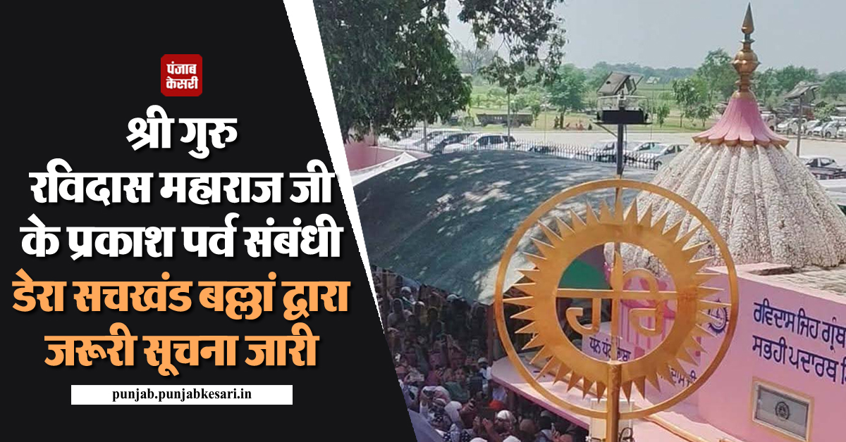श्री गुरु रविदास महाराज जी के प्रकाश पर्व संबंधी डेरा सचखंड बल्लां द्वारा जरूरी सूचना जारी
