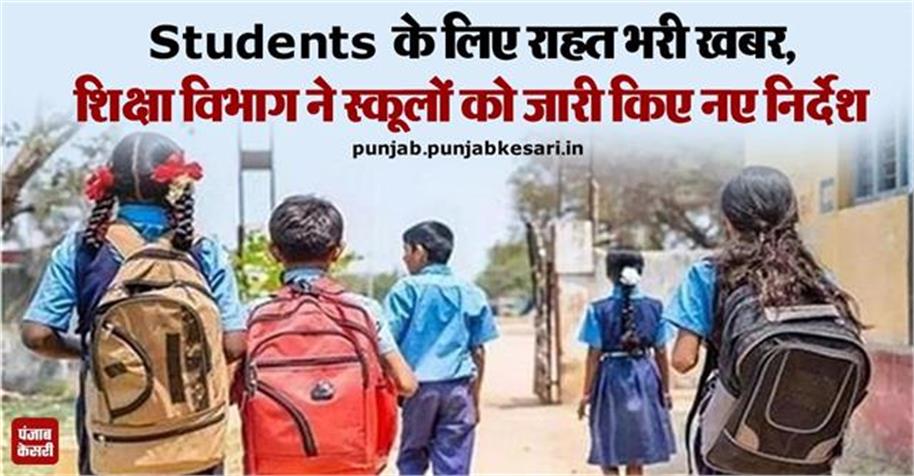 Students के लिए राहत भरी खबर, शिक्षा विभाग ने स्कूलों को जारी किए नए निर्देश