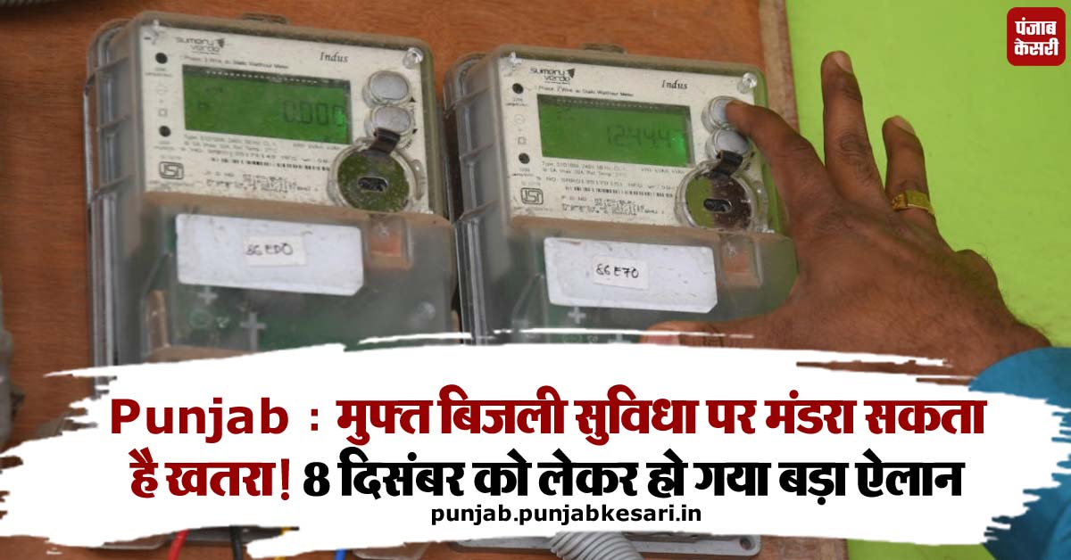 Punjab : मुफ्त बिजली सुविधा पर मंडरा सकता है खतरा! 8 दिसंबर को लेकर हो गया बड़ा ऐलान