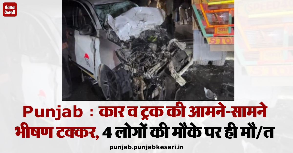 Punjab : कार व ट्रक की आमने-सामने भीषण टक्कर, 4 लोगों की मौके पर ही मौ''त