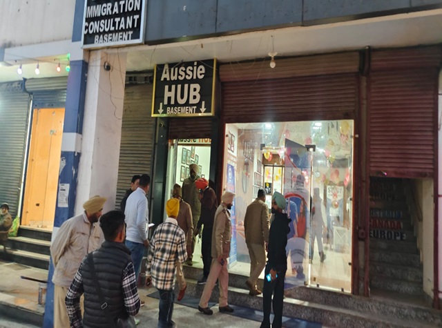 घटना की सूचना मिलते ही एसपी इन्वेस्टिगेशन डी.के. चौधरी, डीएसपी मोहन सिंह, सिटी थाना प्रभारी दविंदर प्रकाश और सीआईए स्टाफ इंचार्ज गुरमीत सिंह भारी पुलिस बल के साथ मौके पर पहुंचे। पुलिस ने इलाके को घेरकर सीसीटीवी कैमरों की जांच शुरू कर दी है। मौके से मिली जानकारी के अनुसार, शाम के समय पल्सर मोटरसाइकिल पर सवार दो युवक, जिनके चेहरे ढके हुए थे, अजोसी हब इमीग्रेशन कार्यालय के बाहर पहुंचे और पिस्तौल से एक फायर कर फरार हो गए। फायरिंग के समय कार्यालय के मालिक हरमनजीत सिंह कंग वहां मौजूद नहीं थे। कर्मचारियों ने बताया कि गोली दिवार पर लगी घड़ी में जा धंसी, जिससे बड़ा हादसा टल गया।
