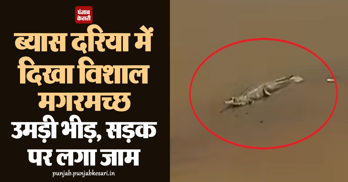 ब्यास दरिया में दिखा विशाल मगरमच्छ, उमड़ी भीड़, सड़क पर लगा जाम