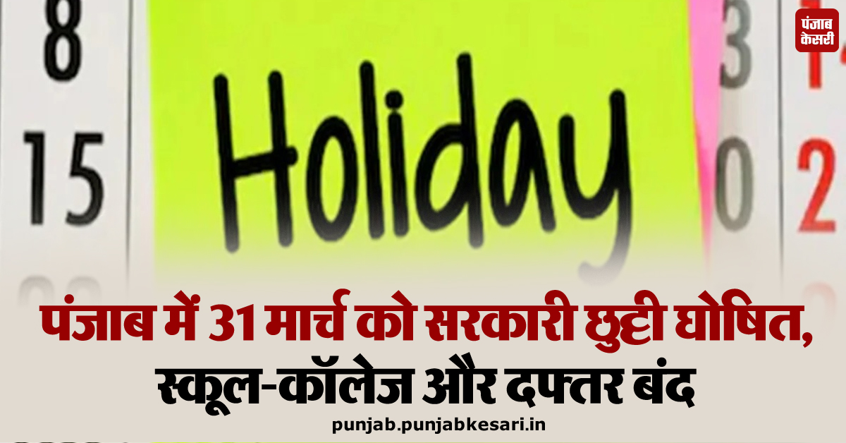 पंजाब में 31 मार्च को सरकारी छुट्टी घोषित, स्कूल-कॉलेज और दफ्तर बंद