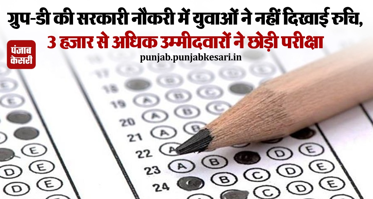 ग्रुप-डी की सरकारी नौकरी में युवाओं ने नहीं दिखाई रुचि, 3 हजार से अधिक उम्मीदवारों ने छोड़ी परीक्षा