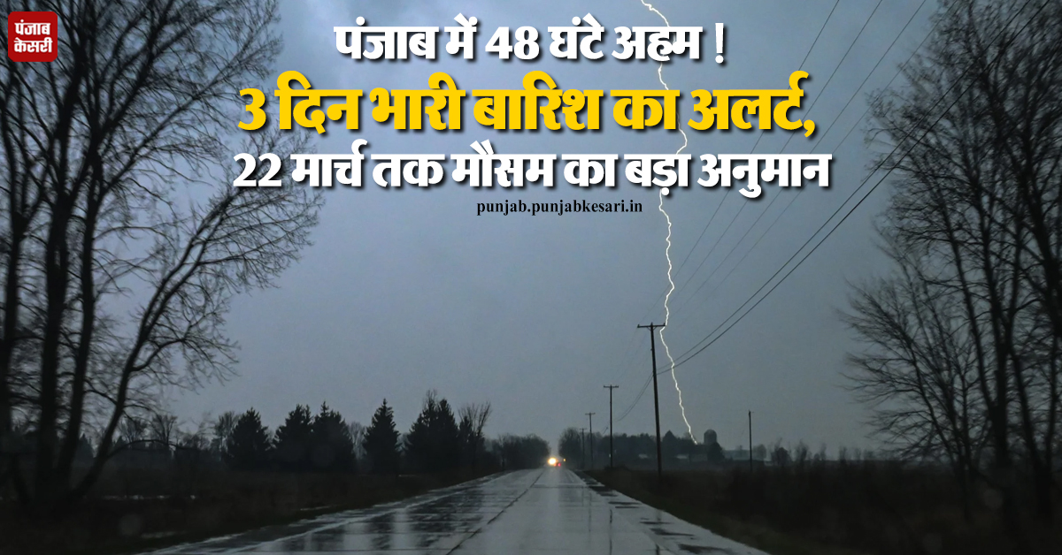 पंजाब में 48 घंटे अहम ! 3 दिन भारी बारिश का अलर्ट, 22 मार्च तक मौसम का बड़ा अनुमान