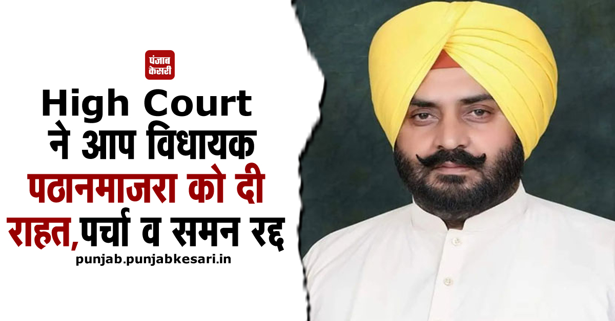 High Court ने आप विधायक पठानमाजरा को दी राहत, पर्चा व समन रद्द