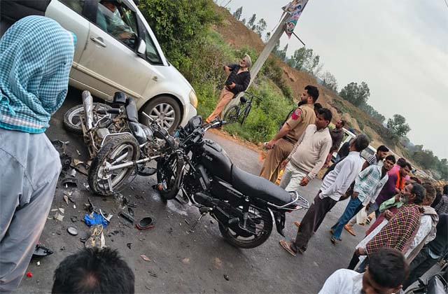 जानकारी के अनुसार, गांव मिलवां का सौरव अपने मोटरसाइकिल पर भवानी की ओर जा रहा था, जबकि गांव रामवाल का मनिंदर सिंह दूसरी ओर से घरोटा की ओर आ रहा था। अचानक भवानी के पास एक आवारा कुत्ता सड़क पार कर रहा था, जिससे दोनों मोटरसाइकिल चालक संतुलन खो बैठे और दोनों की आपस में जोरदार टक्कर हो गई।