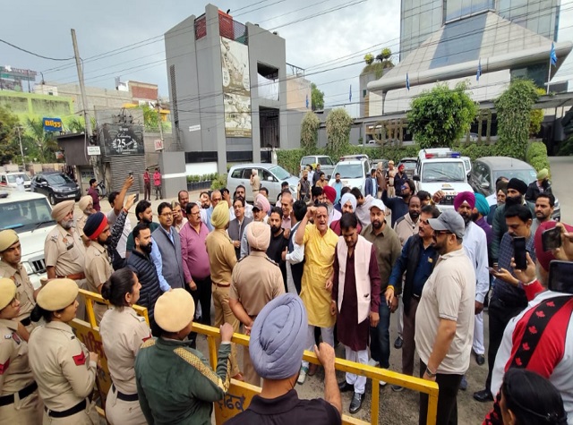 'पंजाब केसरी' होटल पर किए Action पर सियासी संग्राम: कोर्ट के बाहर भाजपा का प्रोटेस्ट
