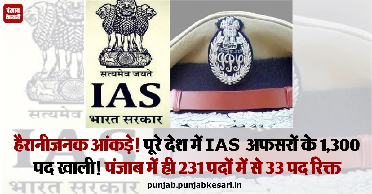 हैरानीजनक आंकड़े! पूरे देश में IAS अफसरों के 1,300 पद खाली! पंजाब में ही 231 पदों में से 33 पद रिक्त