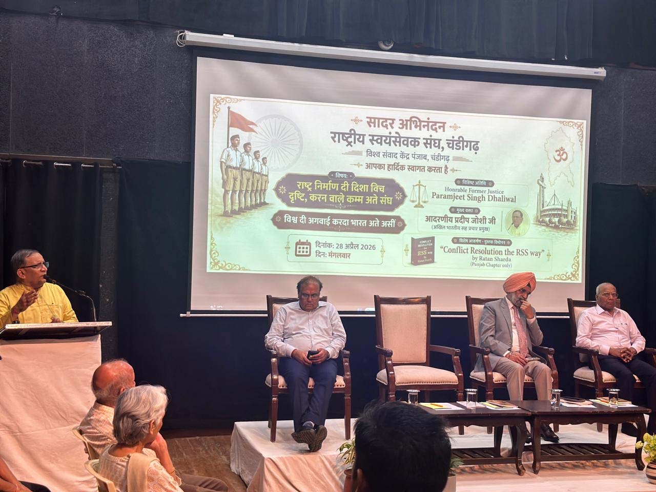 चंडीगढ़। टैगोर मिनी थिएटर में मंगलवार को पुस्तक विमोचन एवं प्रमुख नागरिक गोष्ठी आयोजित की गई। कार्यक्रम में राष्ट्रीय स्वयंसेवक संघ के अखिल भारतीय सह प्रचार प्रमुख प्रदीप जोशी और सेवानिवृत्त न्यायाधीश परमजीत सिंह धालीवाल ने व्याख्यान दिया तथा पुस्तक संघर्ष का समाधान पंजाब अध्याय का विमोचन किया।