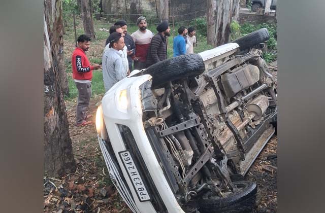 गुरदासपुर में बीच सड़क पलटी सवारियों से भरी इनोवा कार, बाल-बाल बचे लोग!
