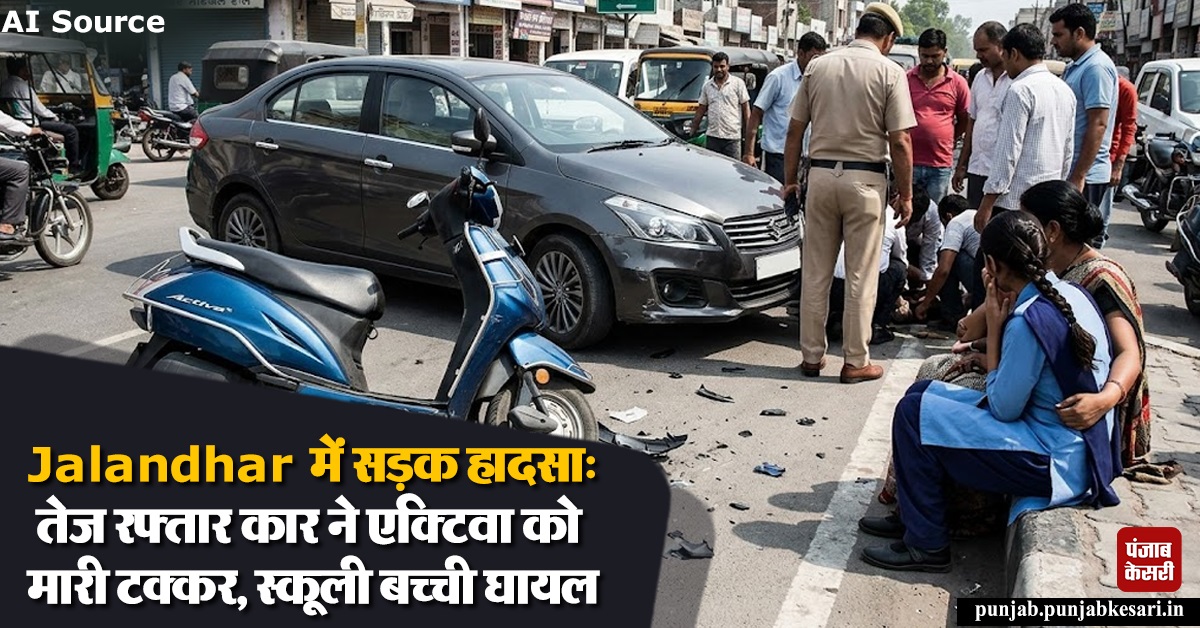 Jalandhar में सड़क हादसा: तेज रफ्तार कार ने एक्टिवा को मारी टक्कर, स्कूली बच्ची घायल