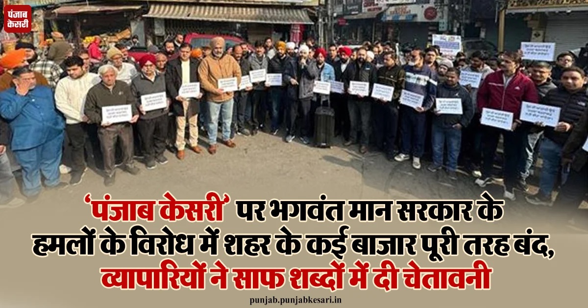 ‘पंजाब केसरी’ पर भगवंत मान सरकार के हमलों के विरोध में शहर के कई बाजार पूरी तरह बंद, व्यापारियों ने साफ शब्दों में दी चेतावनी