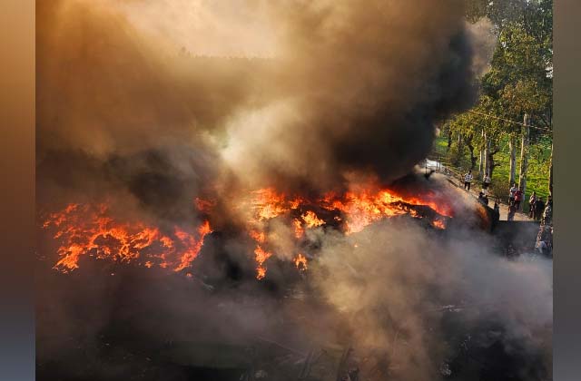 अब तक 3 गाड़ियां आग पर काबू पाने में लग चुकी है। उन्होंने कहा कि एक घंटे से अधिक समय हो चुका है। सरपंच ने बताया कि देव डायरी मालिक ने गोदाम को किराये पर दिया हुआ था। बताया जा रहा है कि गोदाम में चमड़े के जूतों का वेस्टेज सामान रखा जाता है। ऐसे में आग पर काबू पाने के लिए दमकल विभाग को काफी मशक्कत का सामना करना पड़ रहा है। घटना की सूचना मिलते ही पुलिस भी मौके पर पहुंच गई है और लोगों को घटना स्थल से दूर किया जा रहा है। गोदाम में आग इतनी भीषण लगी हुई है कि आग की लपटें दूर से दिखाई दे रही है। शहर से दूर होने के कारण दमकल विभाग की टीम को भी पानी लाने के लिए काफ मशक्कत का सामना करना पड़ रहा है।