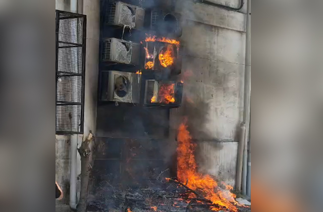 जालंधर : जालंधर के मॉडल टाउन में सड़क किनारे पड़ी पेड़ की टाहनियां को लगाई आग ने भयानक रूप ले लिया। जानकारी के अनुसार मॉडल टाउन की गोल मार्किट के पास मॉल के बाहर सड़क के किनारे पेड़ों की टहनियां आदि पड़ी थी। इस दौरान आग काफी भड़क गई और मॉल की दीवार पर लगे ए.सी. के आउटडोर तक पहुंच गई। इस आग के कारण दीवार पर लगे 6 के करीब ए.सी. के आउटडोर जल गए।