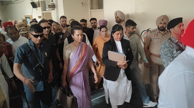 बठिंडा (विजय वर्मा): हिमाचल प्रदेश के मंडी से भाजपा सांसद और बॉलीवुड अभिनेत्री कंगना रनौत सोमवार को मानहानि मामले में पेशी के लिए बठिंडा की अदालत में पहुंचीं। सुरक्षा कारणों से पुलिस ने अदालत परिसर को छावनी में बदल दिया। कंगना को पुलिस सुरक्षा घेरे में कोर्ट तक लाया गया।