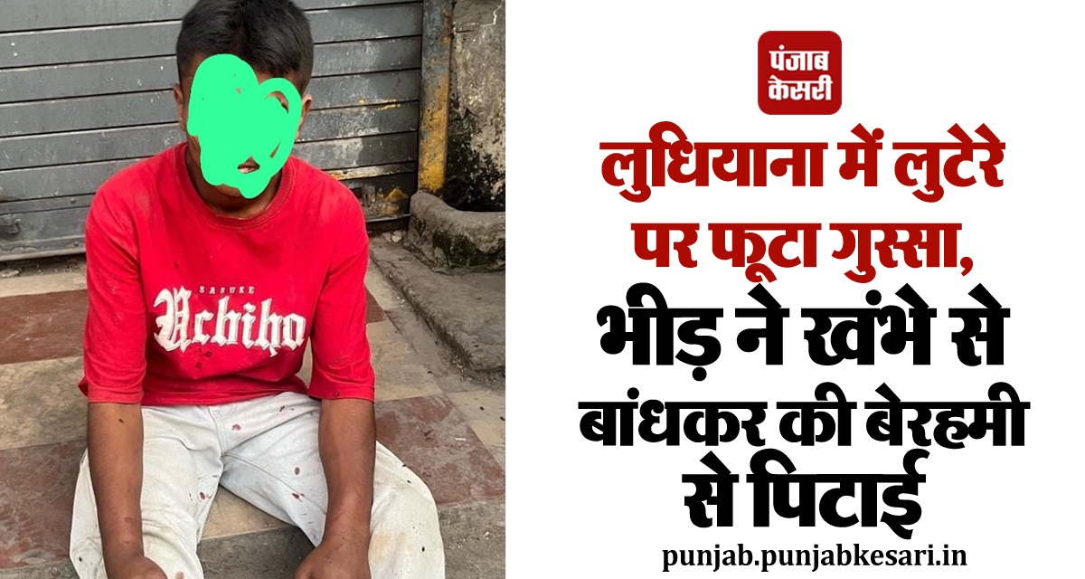 लुधियाना में लुटेरे पर फूटा गुस्सा, भीड़ ने खंभे से बांधकर की बेरहमी से पिटाई