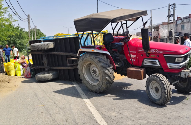 चंडीगढ़ रोड पर बड़ा हादसा टला, अनाज से भरी ट्रॉली हाईवे पर पलटी