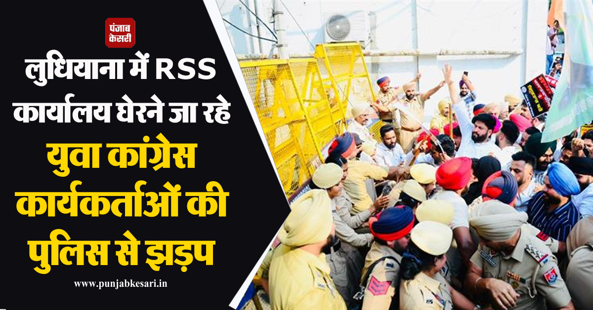 लुधियाना में RSS कार्यालय घेरने जा रहे युवा कांग्रेस कार्यकर्ताओं की पुलिस से झड़प