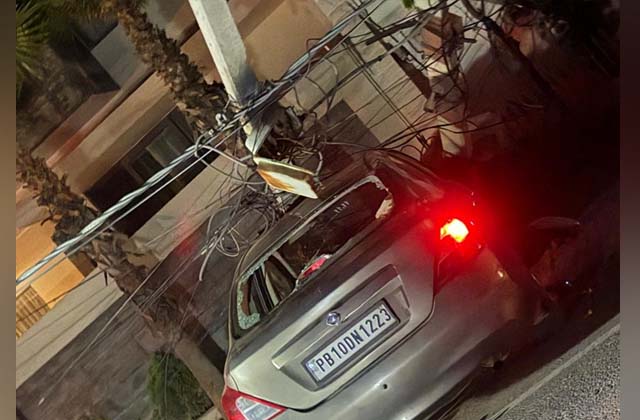 Ludhiana : तेज रफ्तार कार बिजली के खंभे से टकराई, गुल हुई इलाके की बिजली सप्लाई