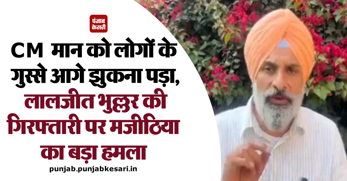 CM मान को लोगों के गुस्से आगे झुकना पड़ा, लालजीत भुल्लर की गिरफ्तारी पर मजीठिया का बड़ा हमला
