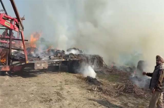 गुरदासपुर (हरमन): गुरदासपुर के दौरागला रोड पर गांव सड्डा के पास उस समय अफरा-तफरी मच गई, जब एक ट्रैक्टर-ट्रॉली सड़क के ऊपर से गुजर रही बिजली की तारों से टकरा गई। बिजली की तारों के संपर्क में आने से ट्रॉली में अचानक आग लग गई। ट्रॉली के ऊपर लदी पराली ने तुरंत आग पकड़ ली, जिससे आग की लपटें दूर तक दिखाई देने लगीं।