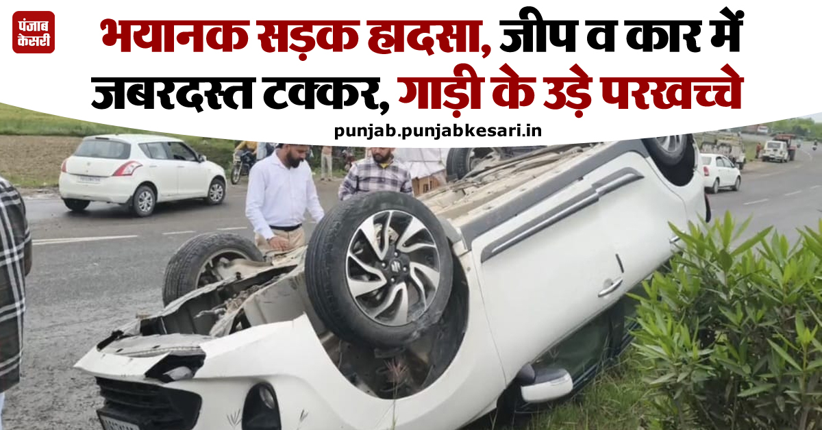 भयानक सड़क हादसा, जीप व कार में जबरदस्त टक्कर, गाड़ी के उड़े परखच्चे