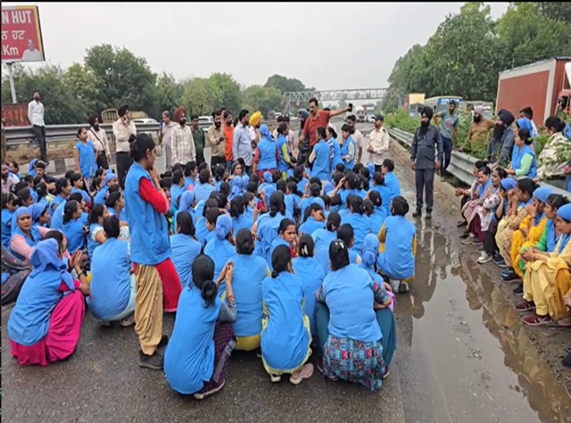 खन्ना में मजदूरों का हंगामा, नेशनल हाईवे जाम कर जताया विरोध, यातायात प्रभावित