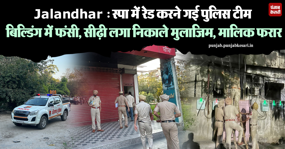 Jalandhar : स्पा में रेड करने गई पुलिस टीम बिल्डिंग में फंसी, सीढ़ी लगा निकाले मुलाजिम, मालिक फरार!