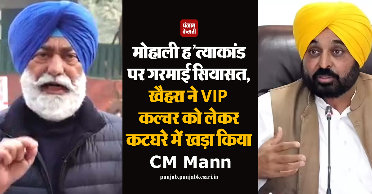 मोहाली ह''त्याकांड पर गरमाई सियासत, खैहरा ने VIP कल्चर को लेकर कटघरे में खड़ा किया CM Mann