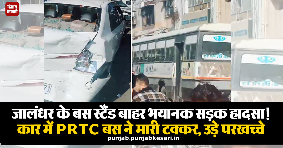 जालंधर के बस स्टैंड बाहर भयानक सड़क हादसा! कार में PRTC बस ने मारी टक्कर, उड़े परखच्चे