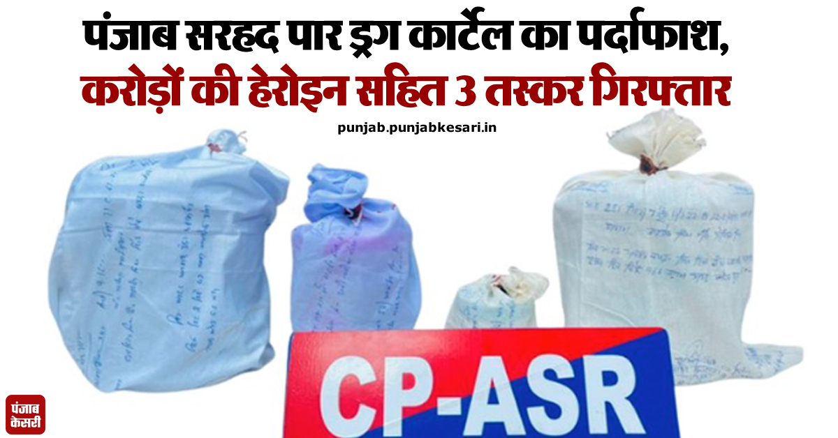 पंजाब सरहद पार ड्रग कार्टेल का पर्दाफाश, करोड़ों की हेरोइन सहित 3 तस्कर गिरफ्तार