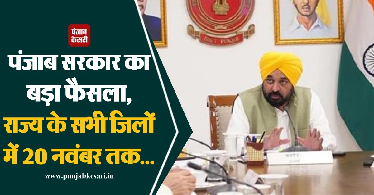 पंजाब सरकार का बड़ा फैसला, राज्य के सभी जिलों में 20 नवंबर तक...