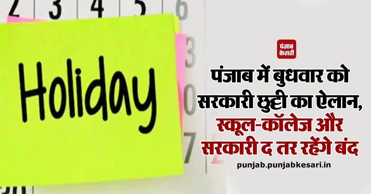 पंजाब में बुधवार को सरकारी छुट्टी का ऐलान, स्कूल-कॉलेज और सरकारी दफ्तर रहेंगे बंद