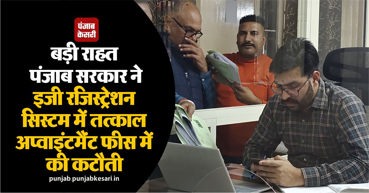 बड़ी राहत : पंजाब सरकार ने इजी रजिस्ट्रेशन सिस्टम में तत्काल अप्वाइंटमैंट फीस में की कटौती